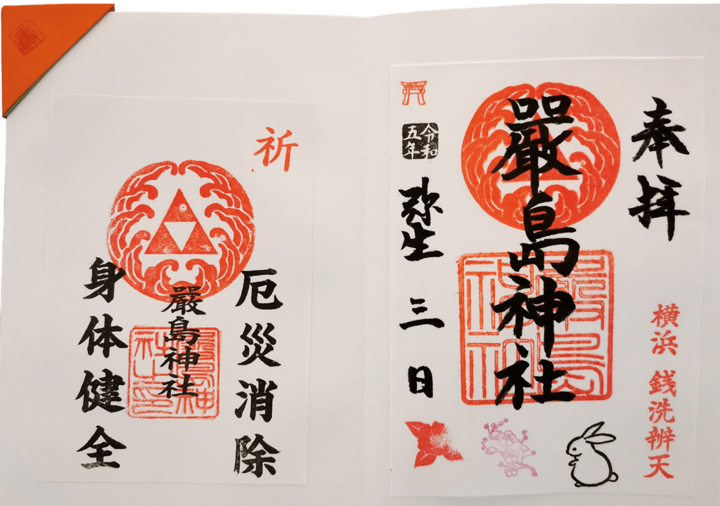 まだコロナ2類の時期だったからか書き置きのみでの対応でしたが、御朱印だけでなく色々と記念品のようなものもいただけました。叶結びの水引と、御朱印帳に使える栞😊